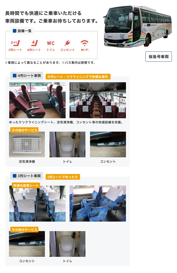 鹿児島中央駅(南国交通高速バス予約センター):099-259-6781(9:00〜17:00)
