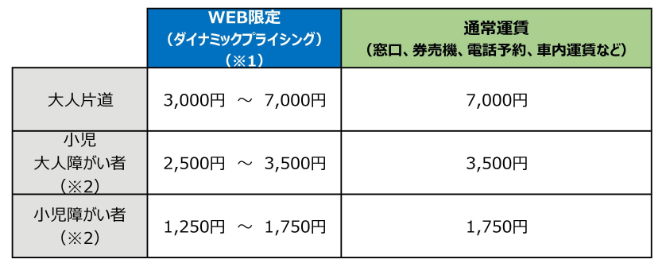 WEB割引運賃、通常運賃