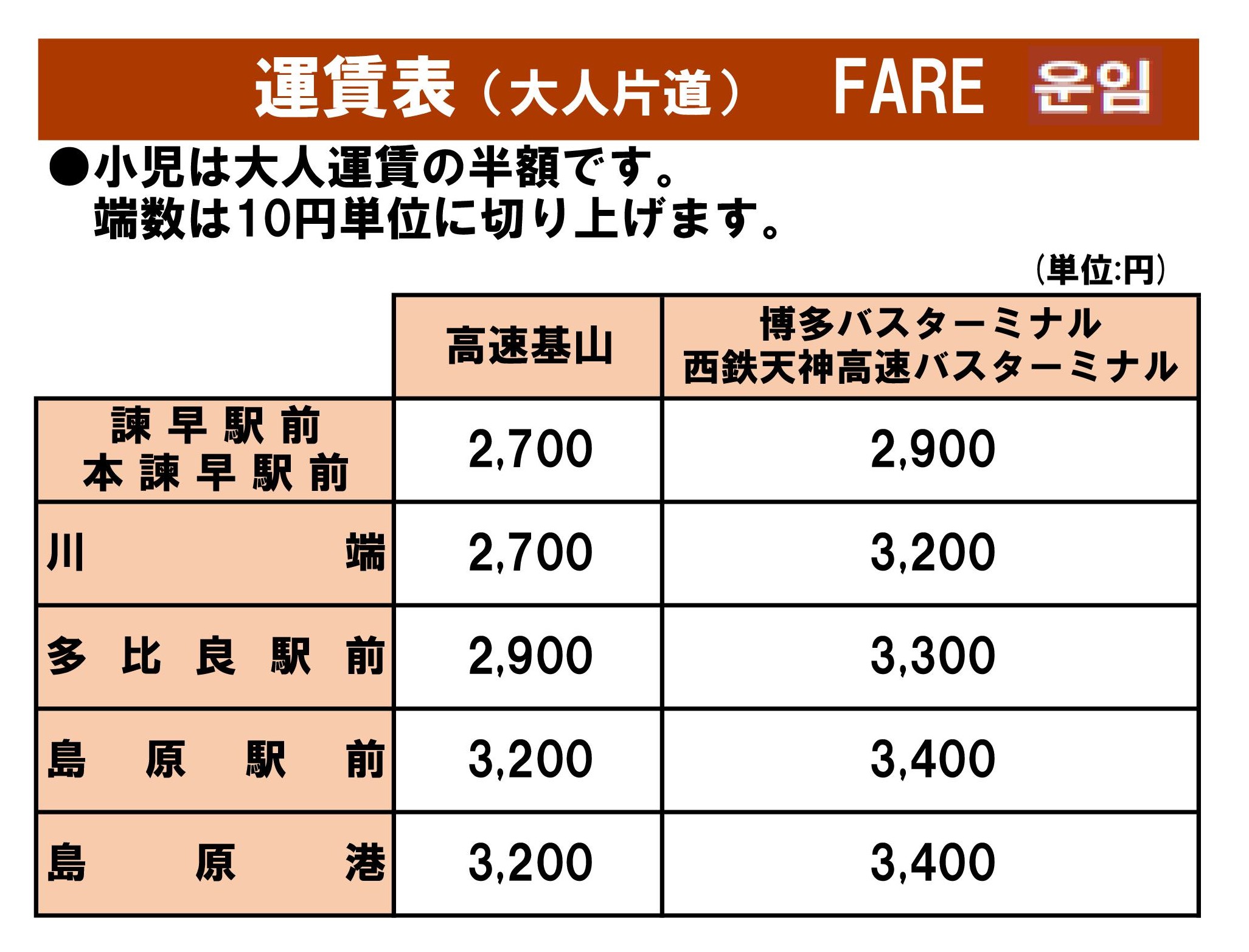 福岡〜川端・多比良駅前・島原駅前・島原港 5,800円 (1枚あたり 2,900円)