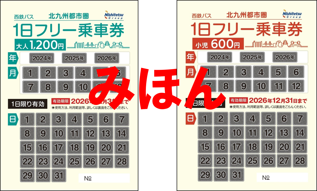 - この乗車券は、1日に限り北九州都市圏(乗車券裏面図参照)を西鉄グループの路線バスで何回でも乗車できます。