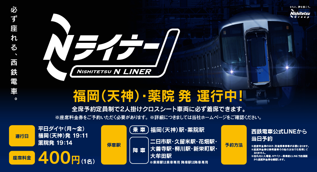 - 〈天神大牟田線・貝塚線〉 3月14日(土) 春のダイヤ改正 ―朝ラッシュ時間帯の増便、有料座席列車「Nライナー」運行開始など―