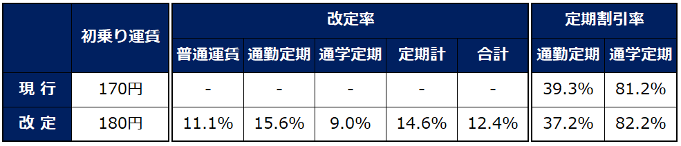 また、家計への負担に配慮し、通学定期の改定率は普通旅客運賃および通勤定期より低く設定しています。