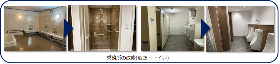 事業運営に必要な人財を確保するとともに、従業員が働きがいを感じることができる職場環境の整備を行います。休憩所、浴室、トイレ、空調設備など、老朽化した従業員用施設の更新を実施します。
