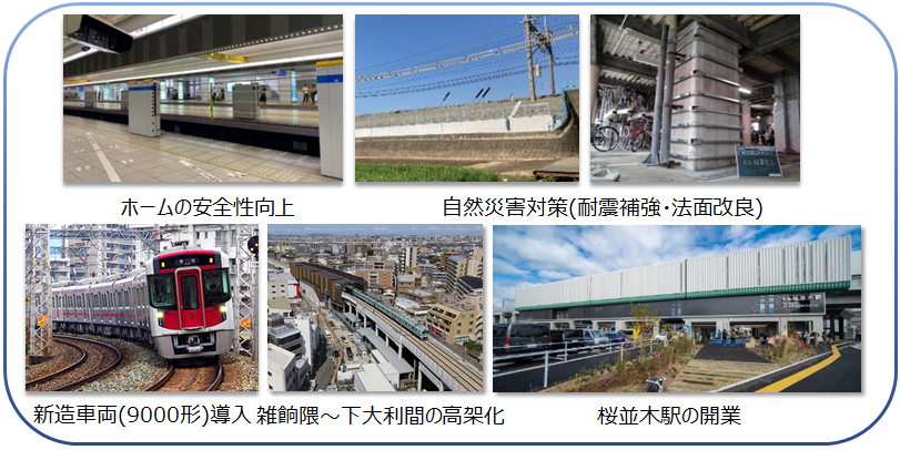 そのほか、新造車両への代替、朝ラッシュ時の輸送力増強、駅施設の改修・改良やバリアフリー整備の継続的な実施など、お客さまサービス向上のための設備投資、職場環境改善など人財確保のための投資を継続的に実施する必要があります。