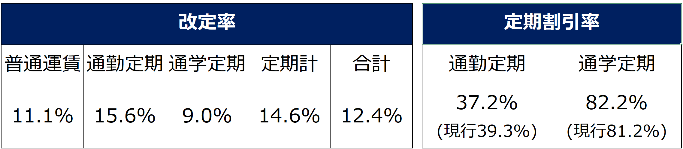 また、家計への負担に配慮し、通学定期の改定率は普通旅客運賃および通勤定期より低く設定しています。