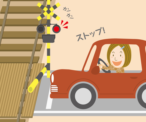 警報機が鳴り始めたら、絶対に踏切に入らないようにしましょう!